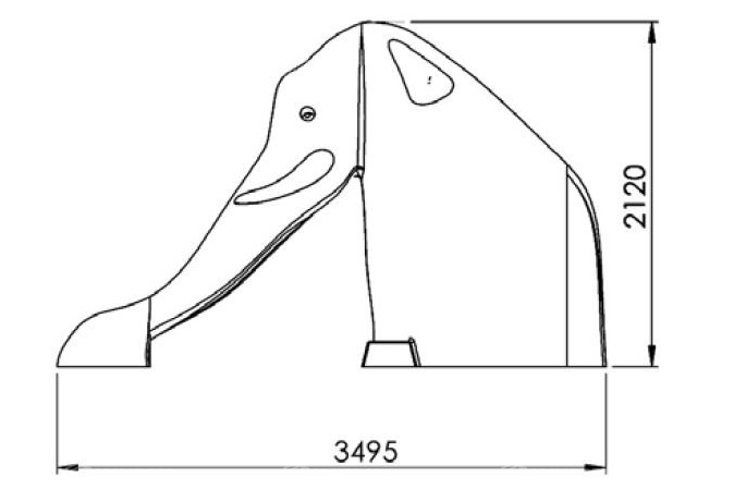 Zabawka wykonana z laminatu wzmocnionego włóknem szklanym. Model Słoń jest najpopularniejszym produktem w swojej kategorii. Zjeżdżalnia posiada wbudowane schody, w opcji może być wyposażona w tryskacze. Kolorystyka zabawki jest dowolna (należy podać kolory wg RAL przy zamówieniu). W przypadku gdy zjeżdżalnia usadowiona ma być na brzegu basenu zalecane jest zastosowanie dodatkowej przedłużki która umożliwi w pełni bezpieczny zjazd do wody.